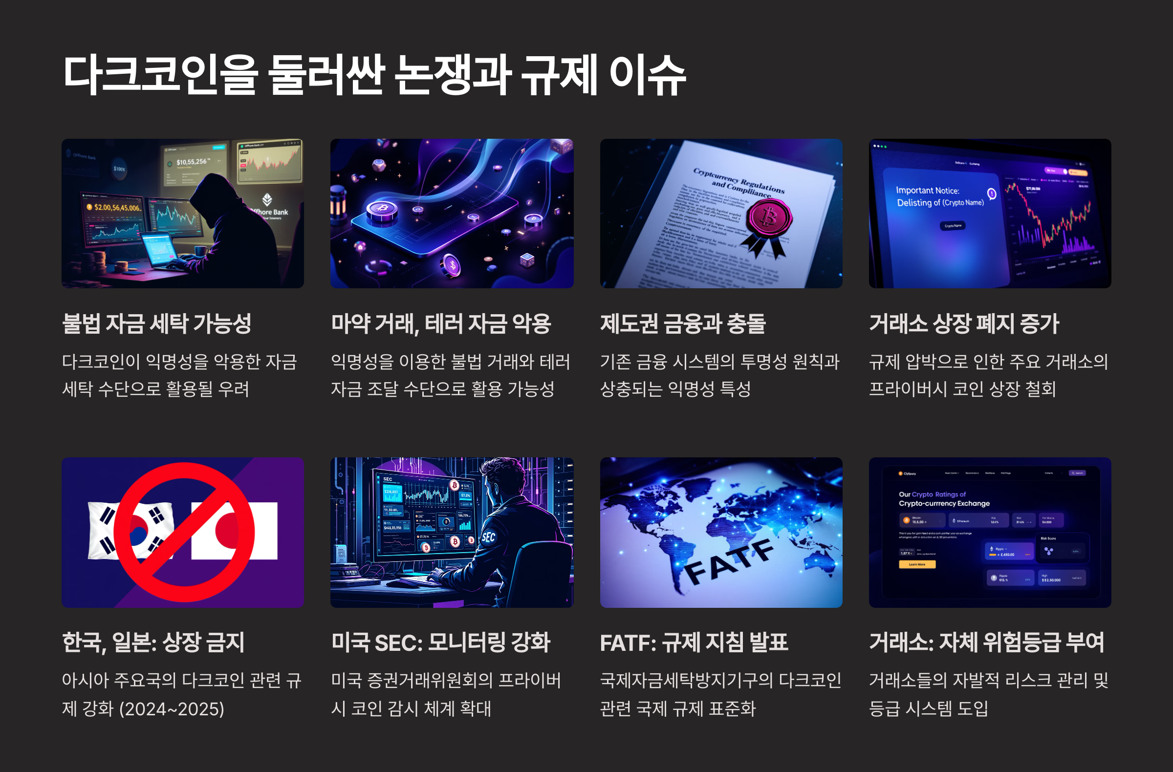⚠️ 다크코인을 둘러싼 논쟁과 규제 이슈