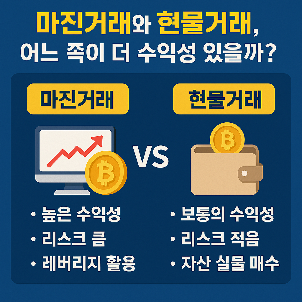 마진거래는 레버리지를 활용하여 높은 수익을 추구할 수 있지만, 그만큼 리스크도 큽니다. 반면 현물거래는 수익이 제한적일 수 있으나, 리스크가 낮아 장기 투자에 적합합니다.