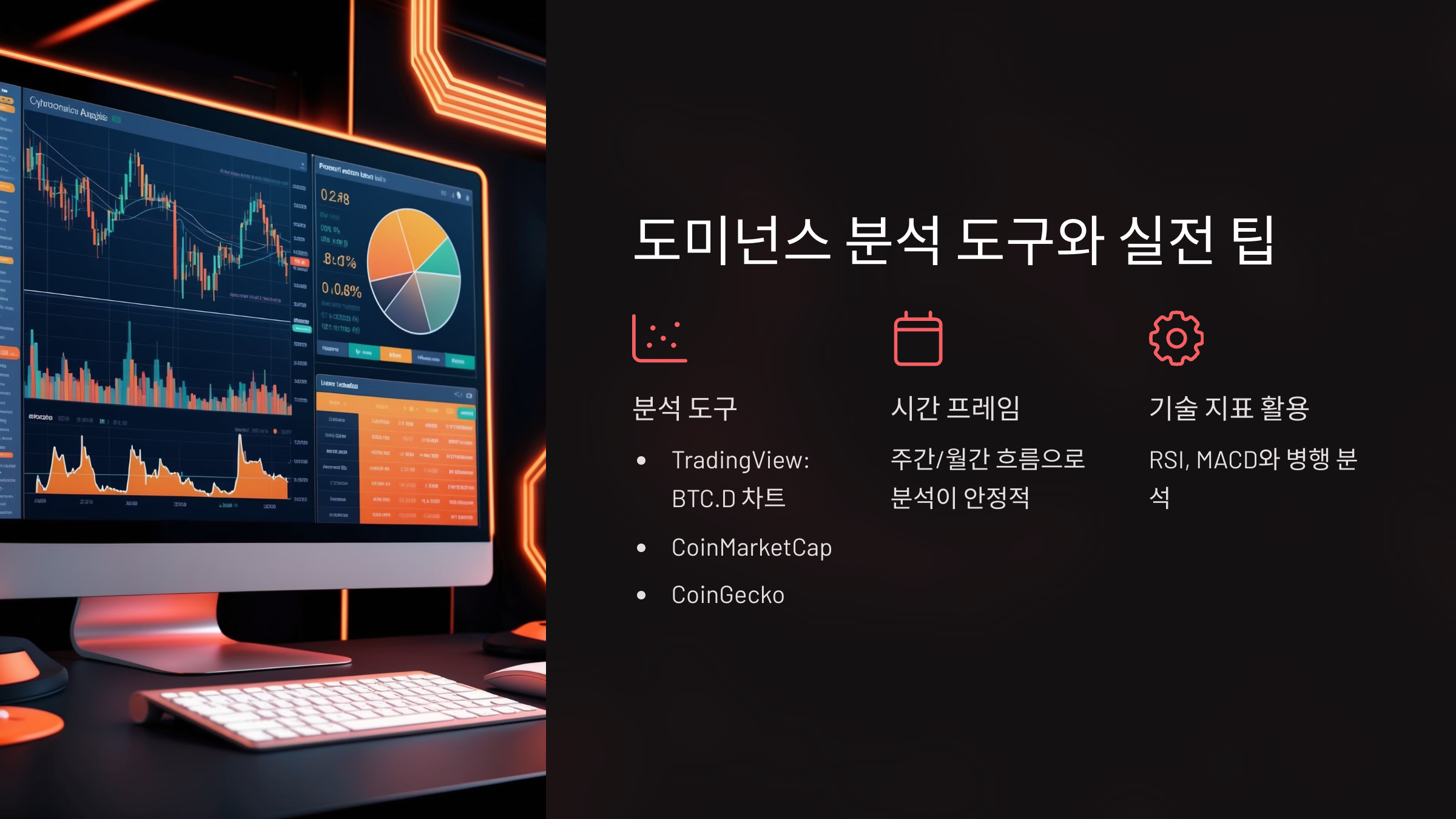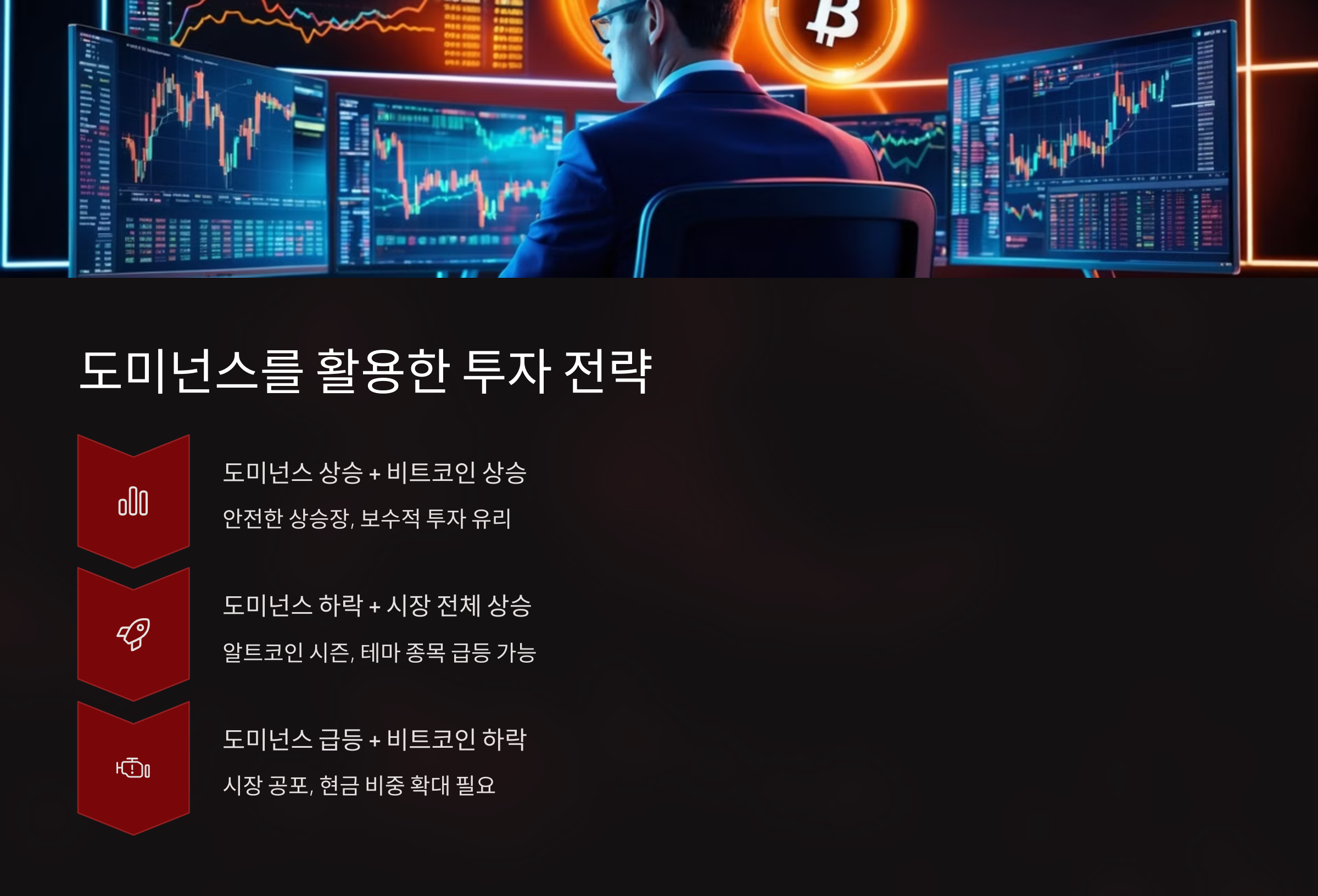 - 도미넌스는 일간 기준보다 주간 혹은 월간 흐름으로 보는 것이 안정적입니다.