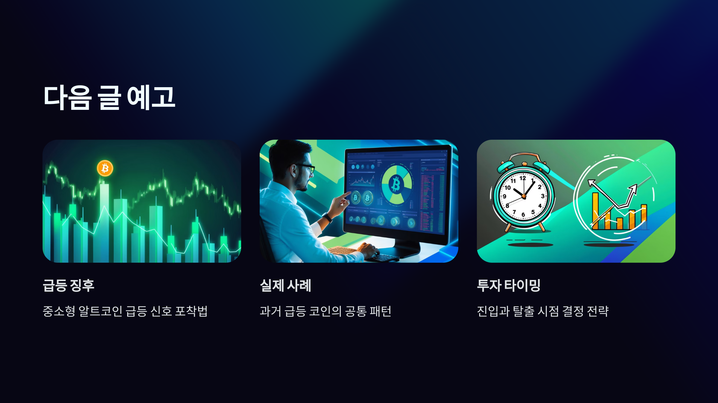 알트코인 사이클은 정형화된 반복이 아니라, 시장의 심리와 외부 변수에 따라 유연하게 변화하는 흐름입니다. 그렇기 때문에 정답을 찾기보다는, 흐름을 읽고 빠르게 대응하는 감각을 키우는 것이 중요합니다.