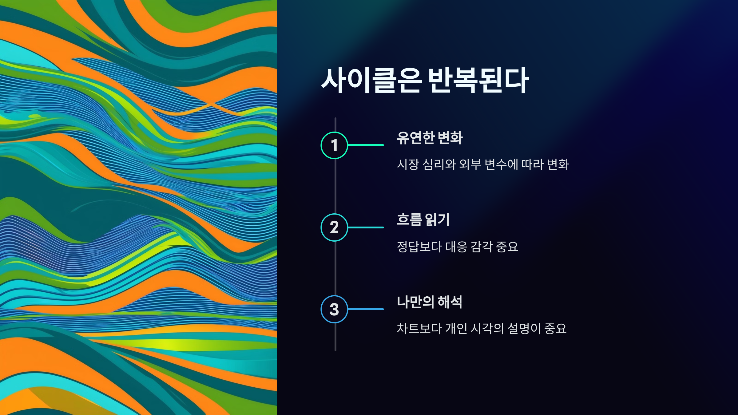 이 주기를 반복하면서 시장은 새로운 국면으로 전환되며, 이를 이해하는 것이 곧 투자 타이밍을 잡는 핵심이 됩니다.