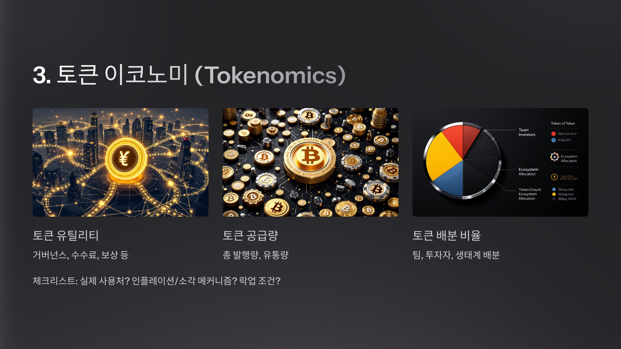 토큰은 프로젝트 내에서 어떤 경제적 역할을 수행하며, 투자자 입장에서 어떤 가치를 제공하는지를 이해해야 합니다.