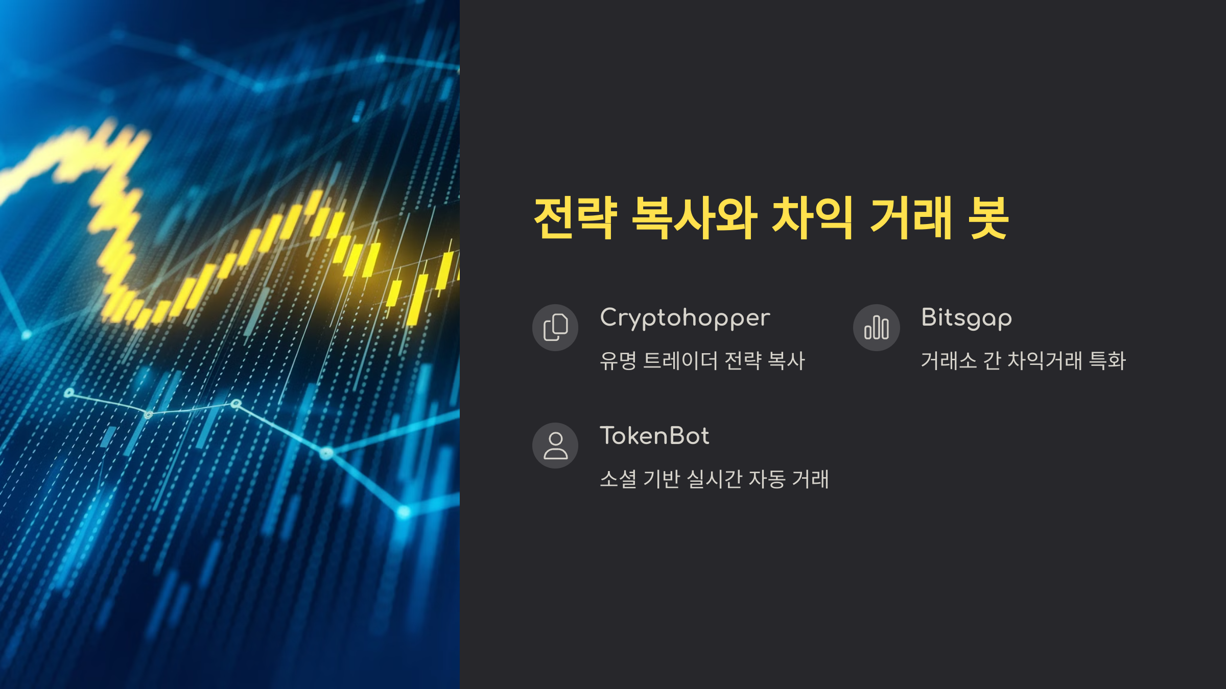 | TokenBot | 소셜 기반 투자자 | 낮음 | ★★☆ | ★★ |
