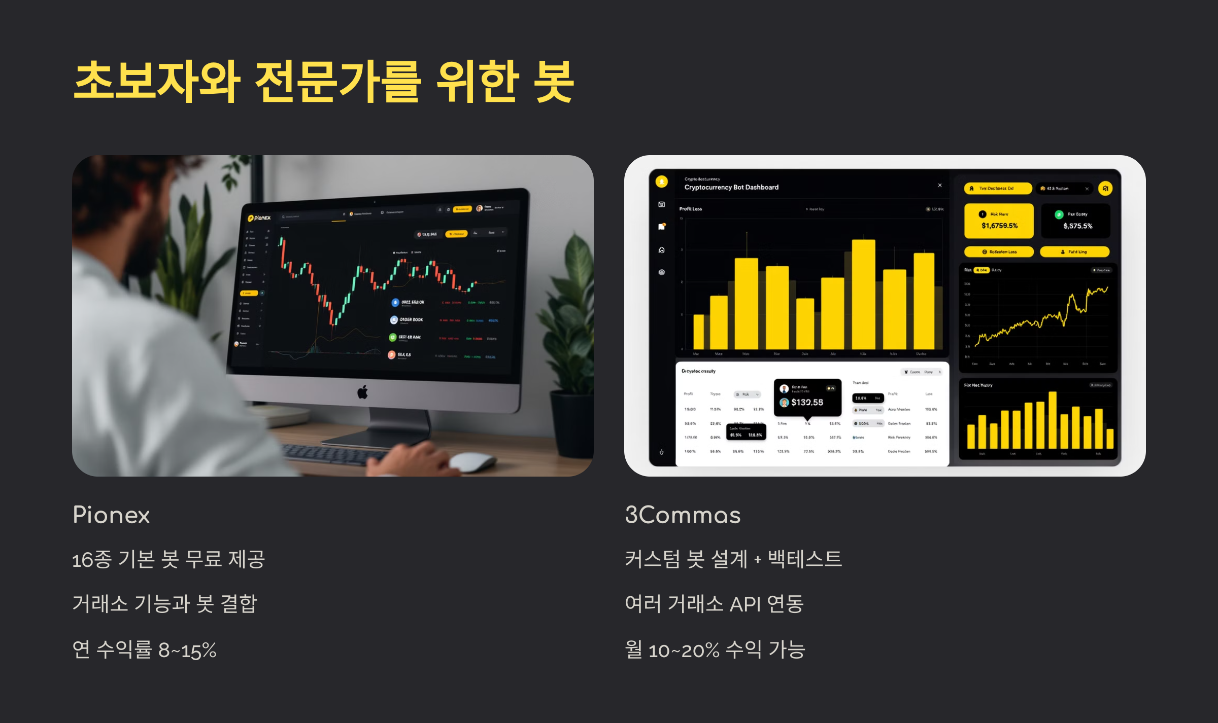 | 3Commas | 중상급자 | 매우 높음 | ★★★☆ | ★★★☆ |