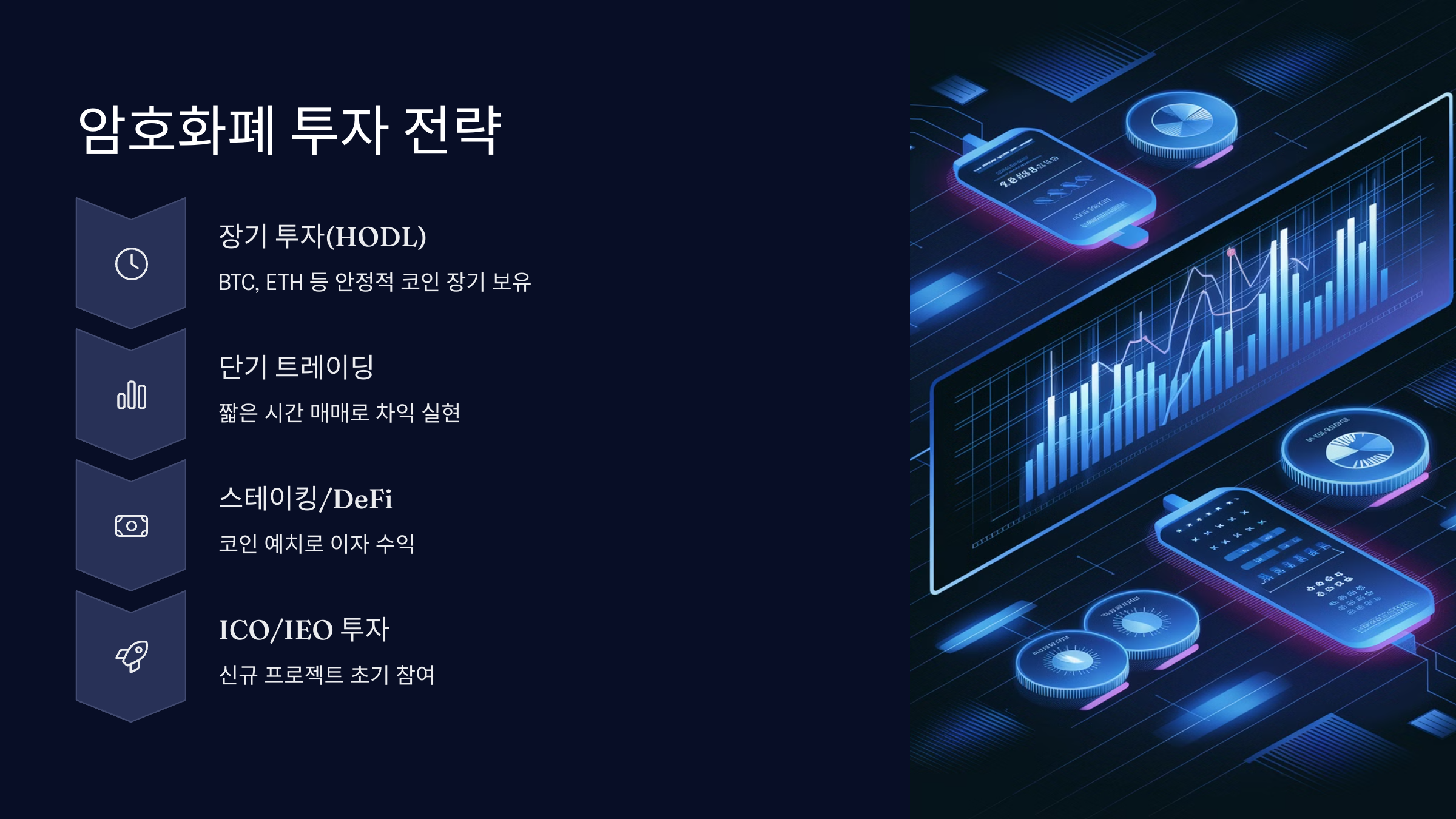 암호화폐 투자는 디지털 자산을 매매하거나 장기적으로 보유하여 수익을 창출하는 활동입니다. 전통적인 주식 시장과 달리 암호화폐 시장은 연중무휴 24시간 운영되며, 높은 변동성을 보이는 것이 특징입니다.