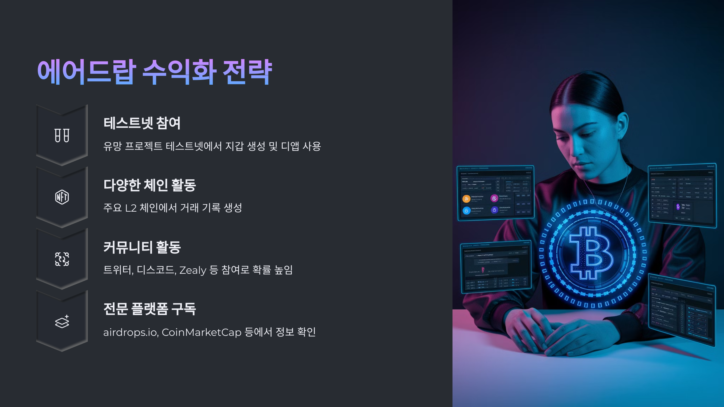 에어드랍은 암호화폐 세계에서 드물게 '노동 없는 수익'처럼 보일 수 있지만, 정보력, 신속한 참여, 보안에 대한 이해 없이는 오히려 리스크로 작용할 수 있습니다.