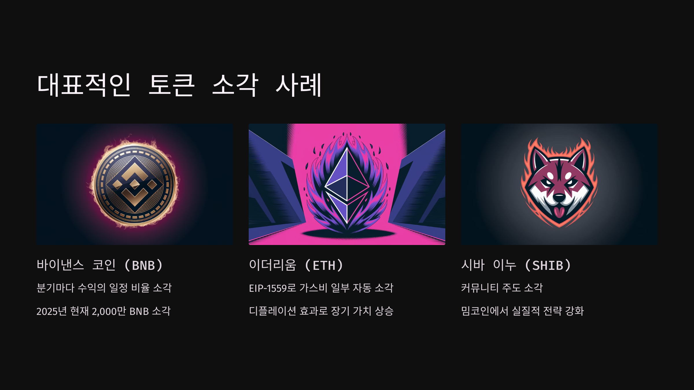 - 예시: 바이낸스(BNB)는 분기별 수익의 일부를 소각