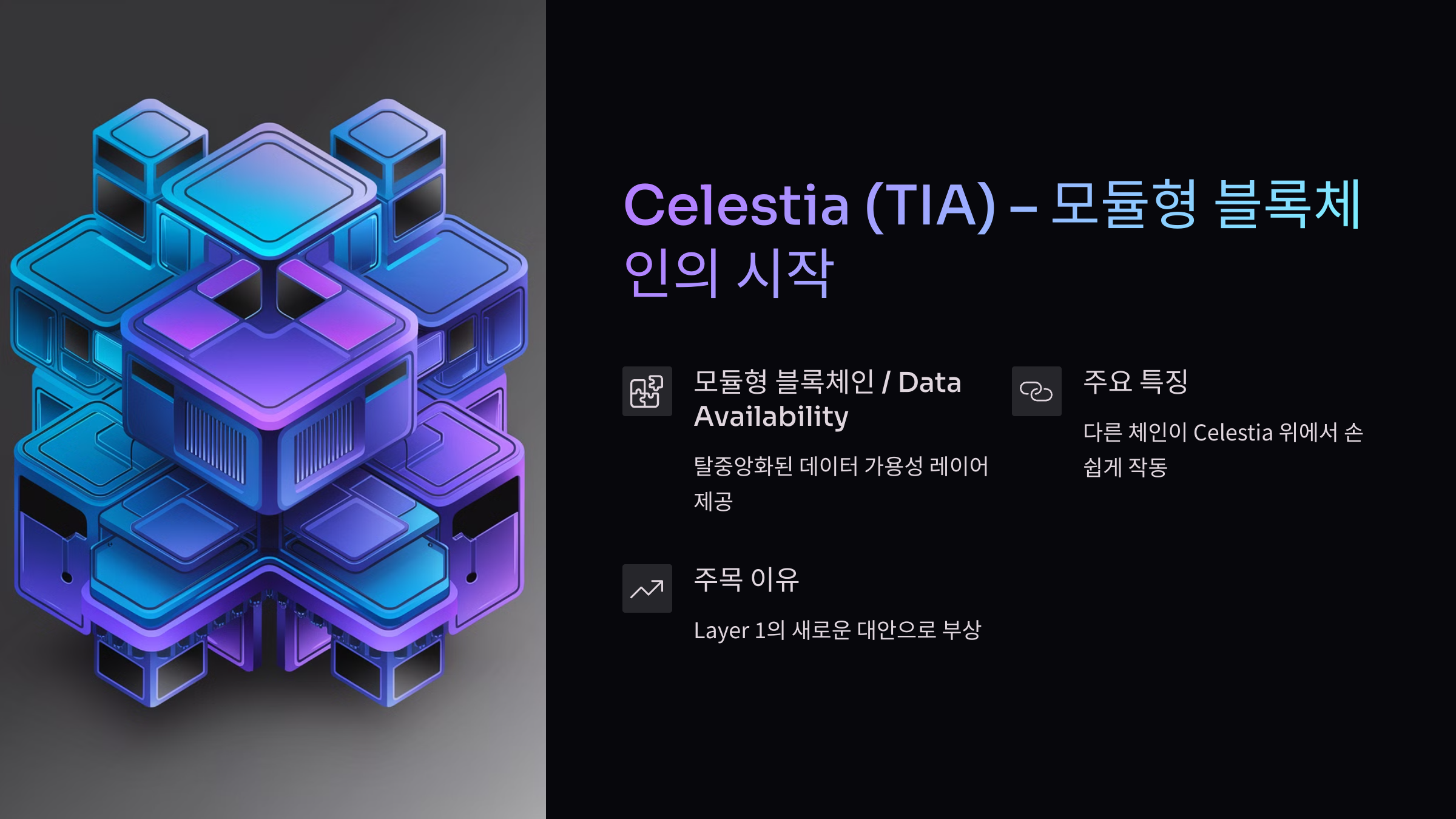 ✅ 1. Celestia (TIA) – 모듈형 블록체인의 시작
